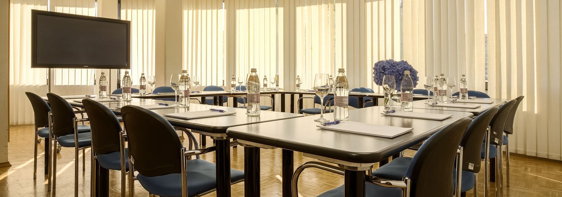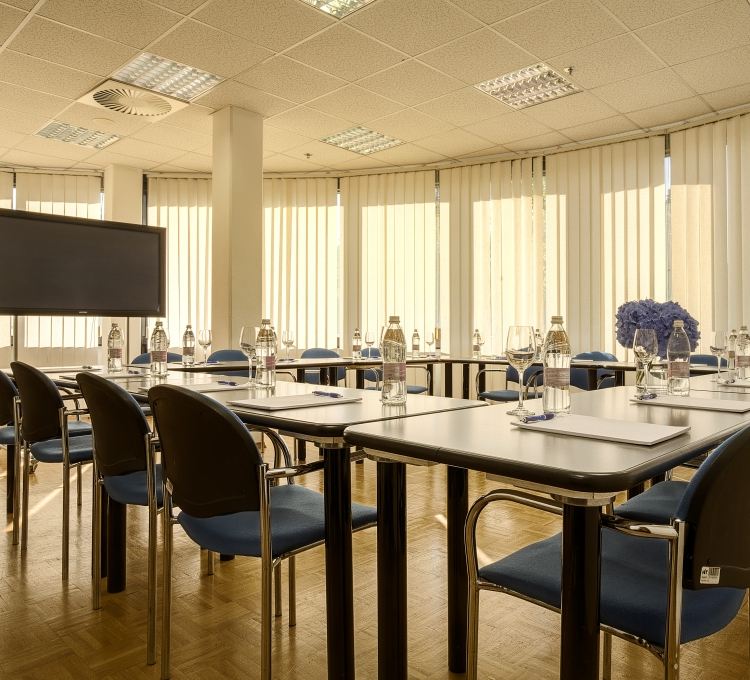La sala riunioni dispone di luce naturale. Nella disposizione a U è adatta a workshop interattivi con circa 16 persone, mentre nella disposizione a platea può ospitare fino a 30 persone. Nell’ambito di conferenze di maggior portata, può essere usata per i lavori di gruppo.